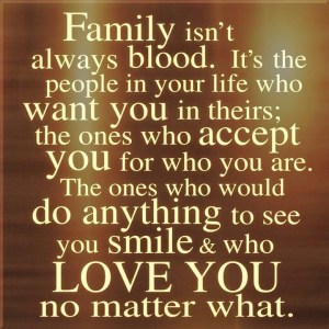 None of these people are blood – but they don’t have to be. They’re bound to me by the heart. So how can anyone say they are lesser family than blood family?